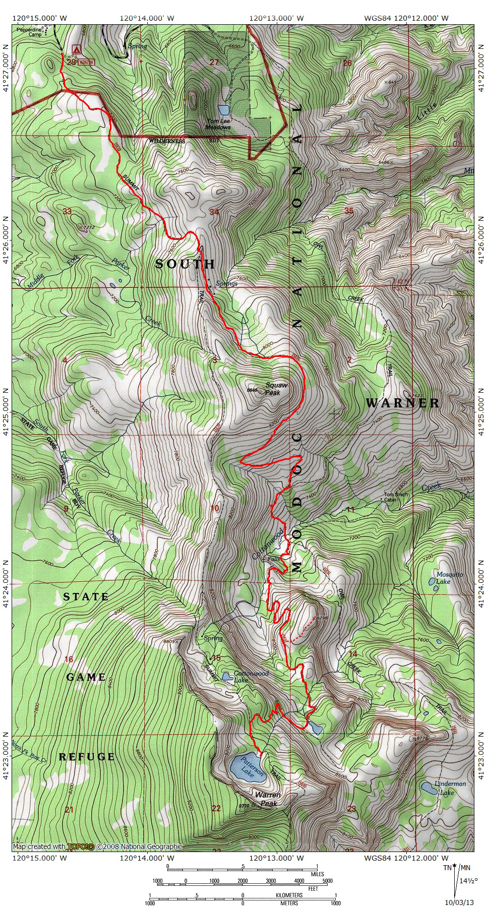 The Squaw Peak Trail is one of the most scenic trails in Northern California. It has spectacular scenery nearly every step of its entire length and accesses some of the prettiest sections of the Warner Mountains, one of California’s remotest mountain ranges. Ironically, the Squaw Peak Trail does not actually climb its namesake mountain. Instead, it travels around three of the four sides of the peak, passing from the north side to the south side. Beyond Squaw Peak, the Squaw Peak Trail climbs up the terraced flanks of the Warner Mountains before emerging on the shores of Patterson Lake, one of the most the most fantastic destinations in the northern part of California. Along the way, the trail passes through several verdant meadows and along numerous creeks tumbling down the Warner Mountain’s remarkably rugged eastern escarpment. The trail begins and ends at junctions on the Warner Summit Trail, so it can be used to form a striking loop, covering some of the most attractive parts of the Warner Mountains. The Squaw Peak Trail is also one of the three trails, along with the Warner Summit Trail and the Owl Creek Trail that combine to form the epic circuit around the South Warner Wilderness.