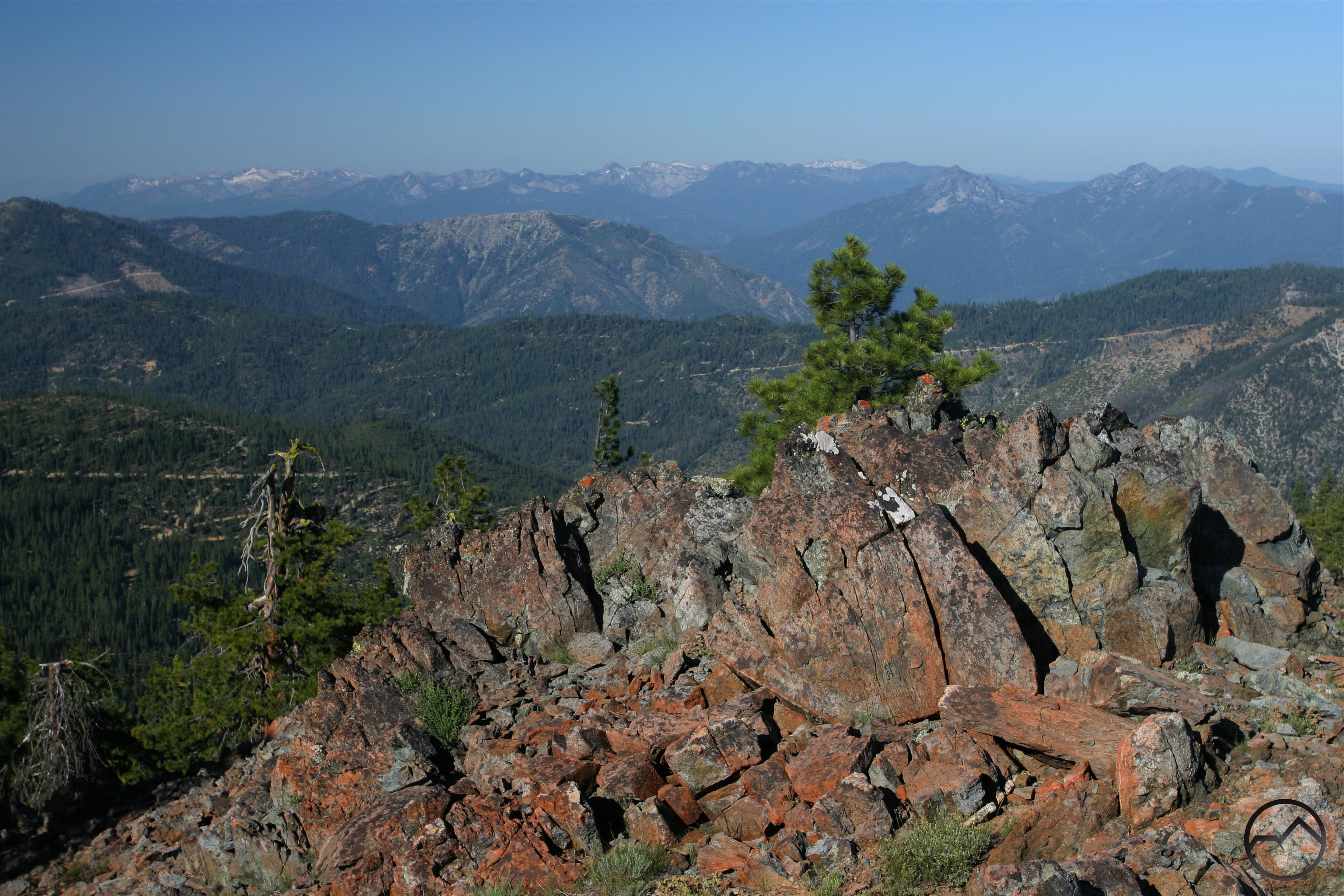 A quick off trail scramble to views into the heart of the Klamath Mountains especially of the magnificent Trinity Alps.